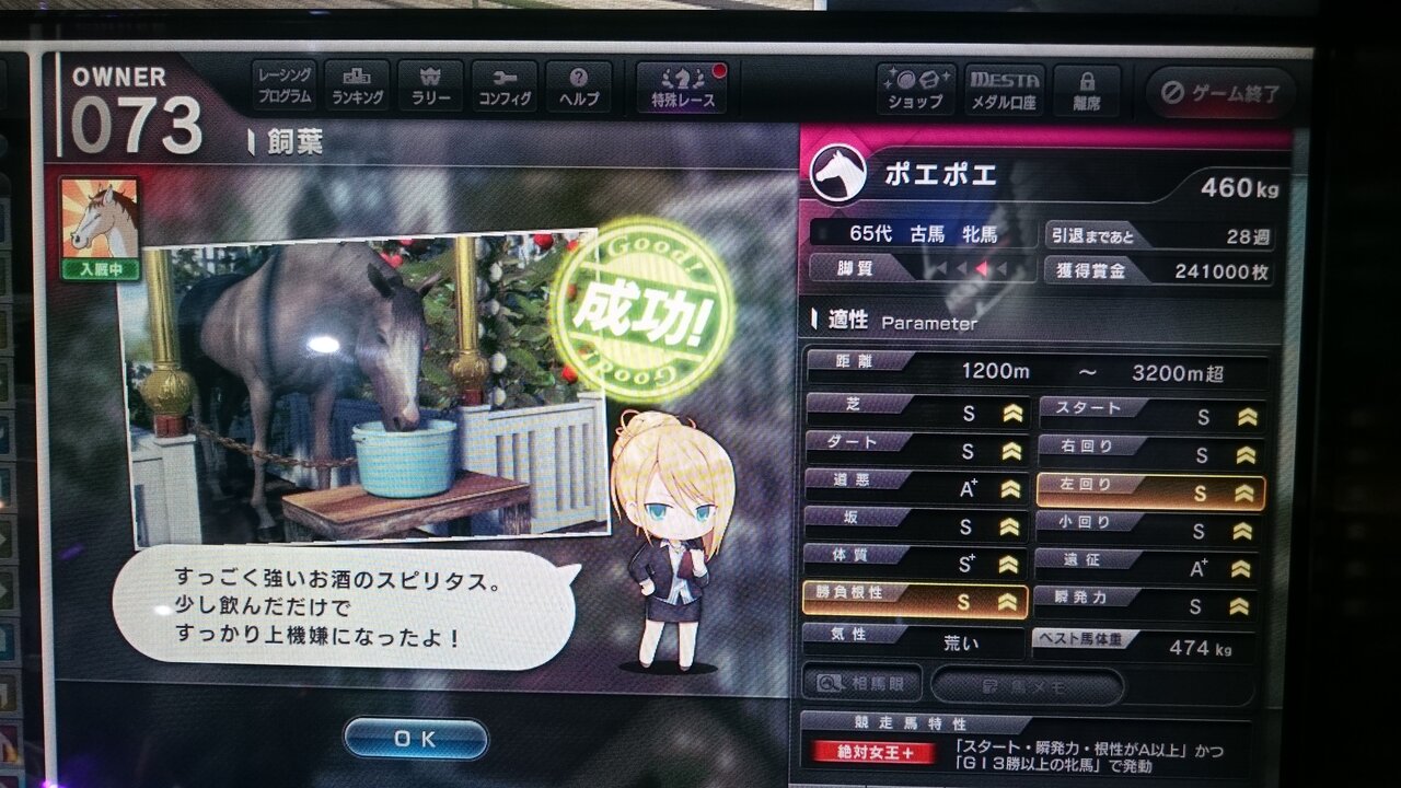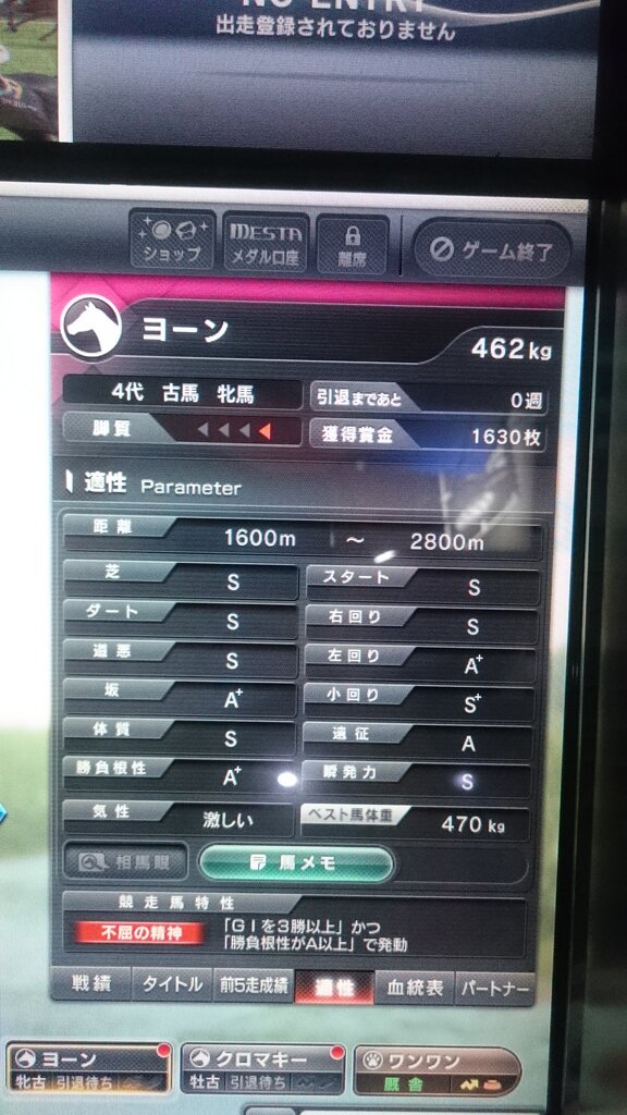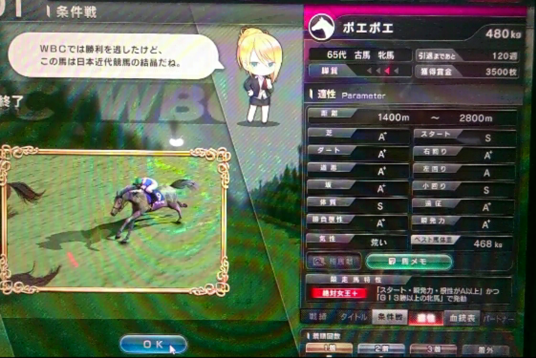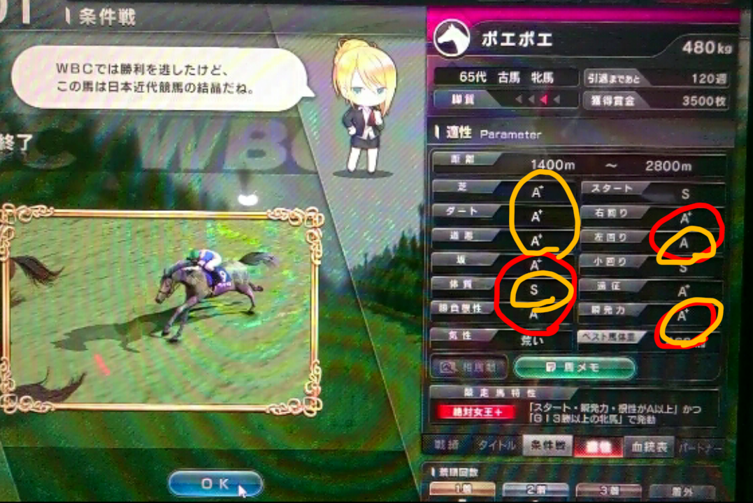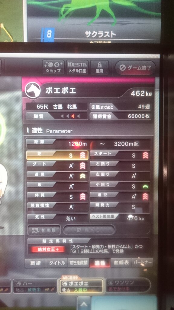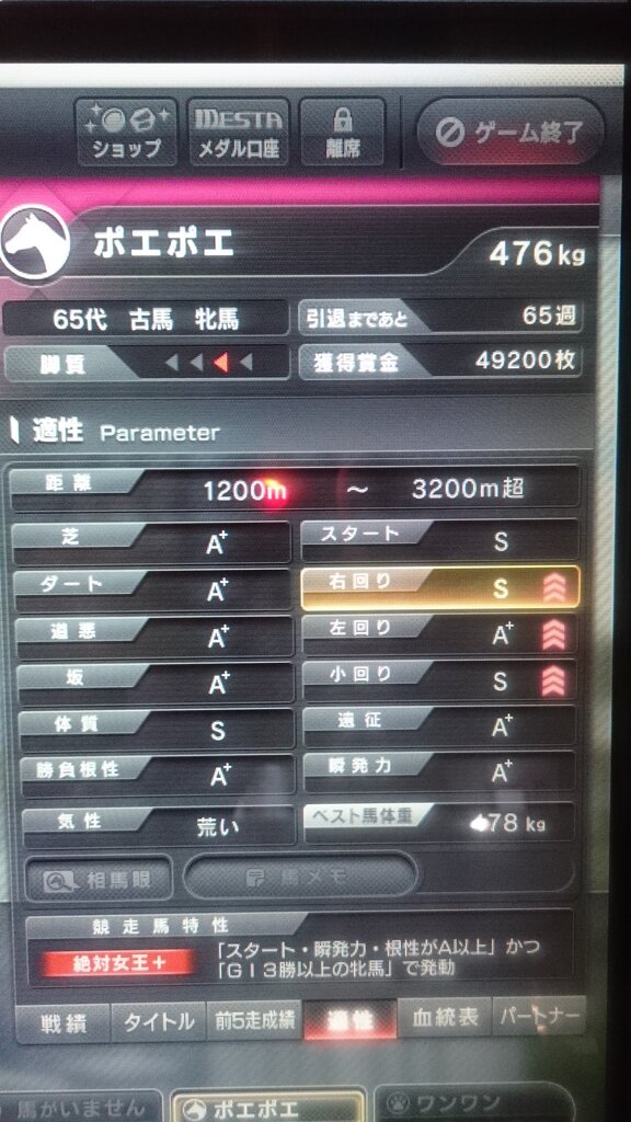 厩舎で長く眠りについてた64代目の怪物馬と、動画用にオールSを狙って途中で断念した4代目です。(笑)