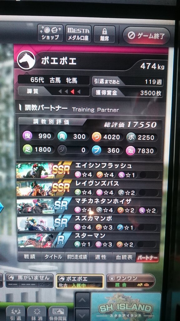 初期株券でもパートナー調教をひたすら押せばパラオールSには届きましたが、普段よりスタカを消費するコスト面や育成時間を考えると『ある程度初期投資をして、良い株券を揃えて育成』の方が効率的にも良いとしみじみ感じました。(笑)