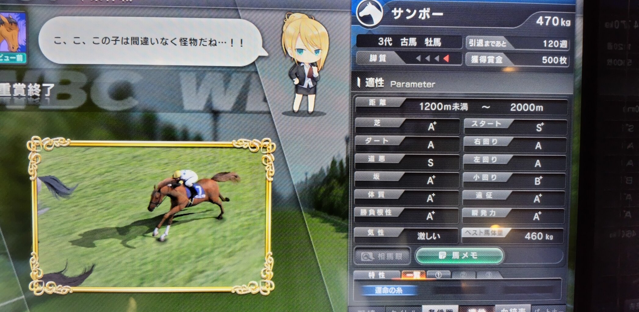 ちゃんとS+判定になっているようで、同じく初代馴致でスタート適性をSにした馬を配合したら2代目で生産時スタートSの馬が産まれました。